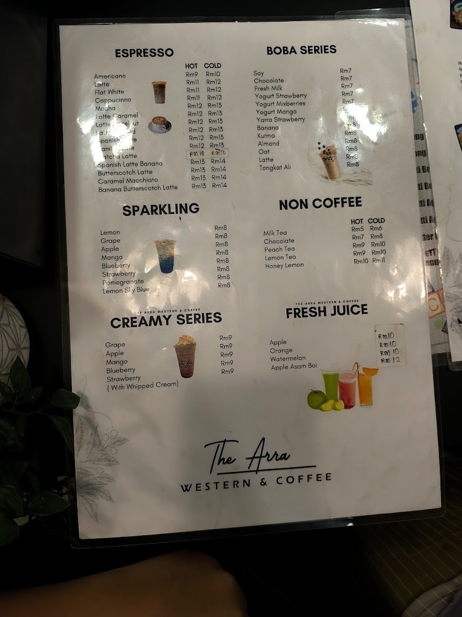 The Arra Western and Coffee Menu